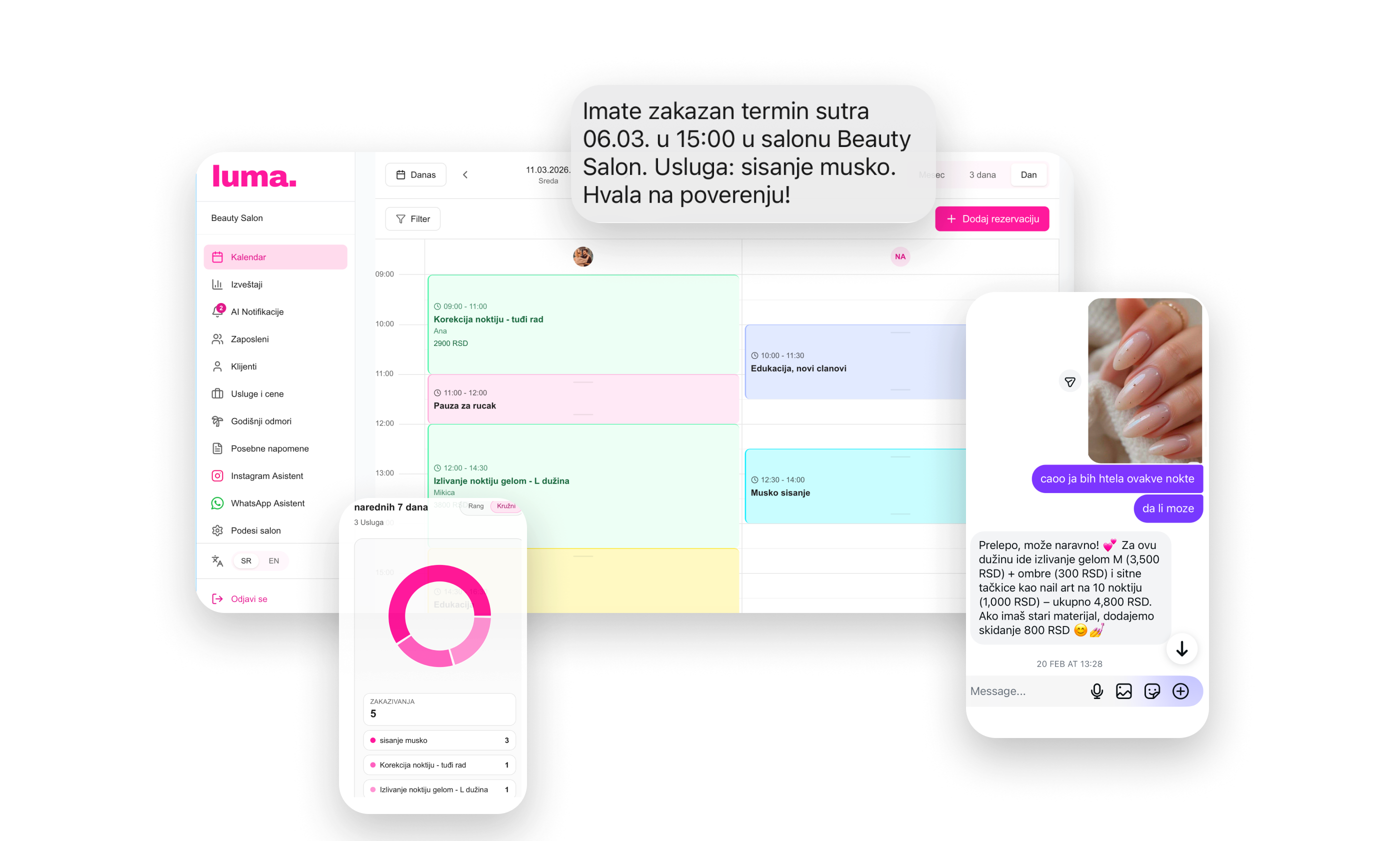 Za manji salon koji želi uredan AI inbox i jasan početak uz Instagram i WhatsApp od prvog dana.
